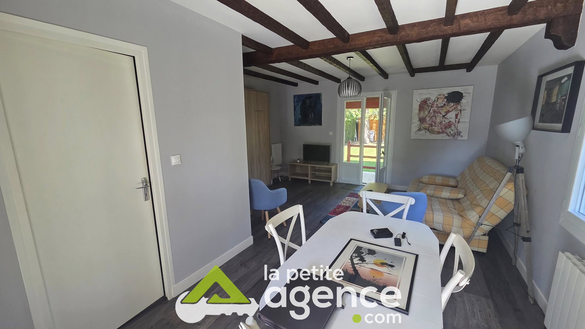 Maison entièrement meublée type studio de 37 m2 comprenant : une cuisine aménagée et équipée, un salon séjour , une salle d'eau et wc. Terrasse couverte et jardin.