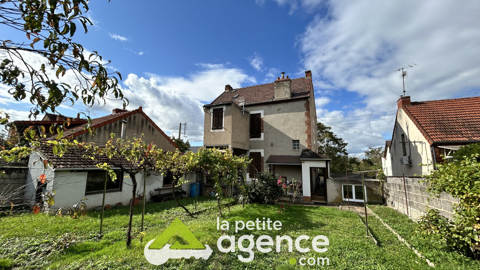 Montluçon (03100)Quartier calme, proches écoles. Maison 1930, disposant d'un beau terrain clos de murs, garages et atelier. Caves. Composé de salon cuisine et trois chambres. une salle d'eau, wc indépendant. Une salle de bains avec WC. Grenier. Possibilité d'aménagement sous combles.