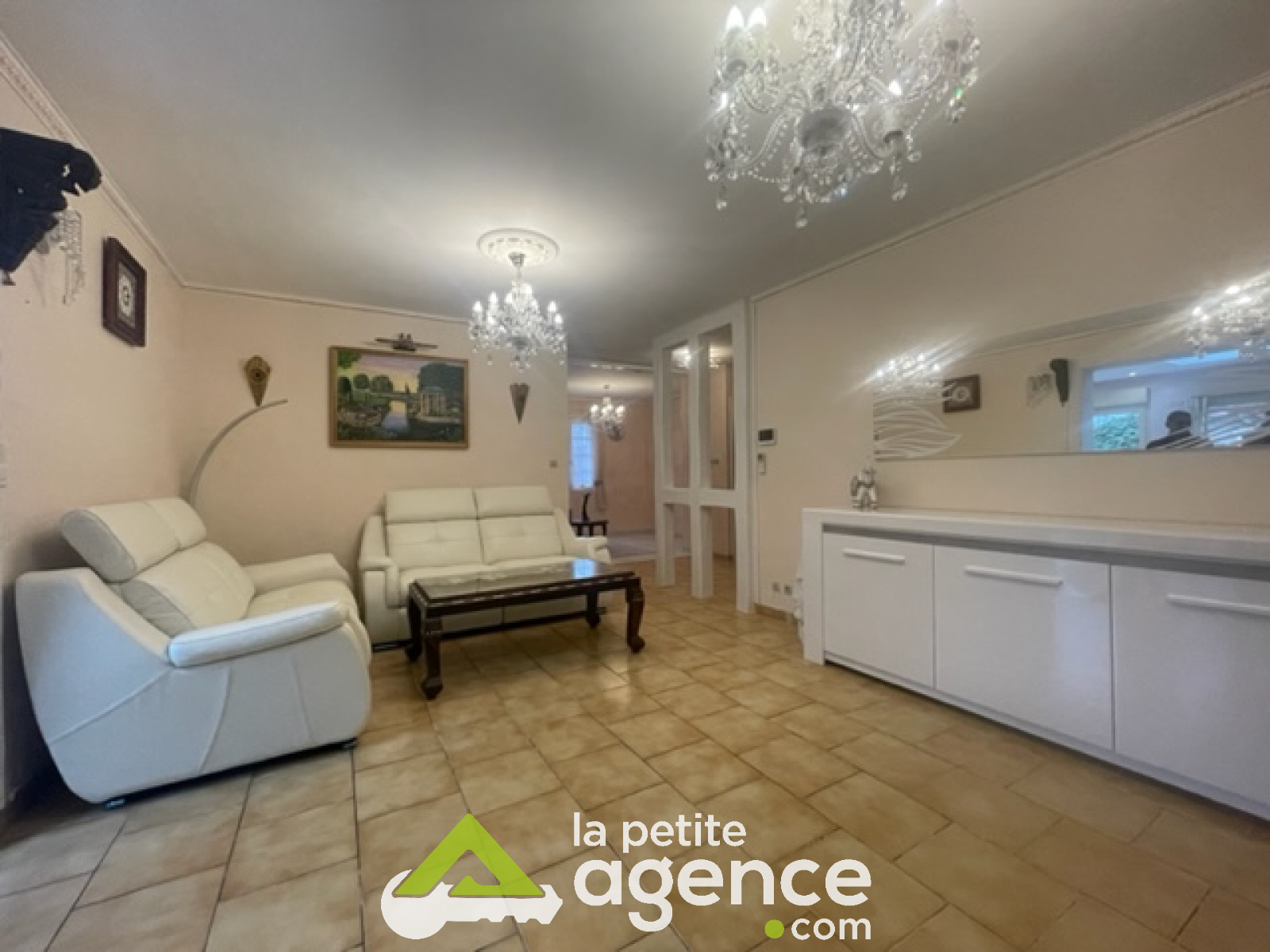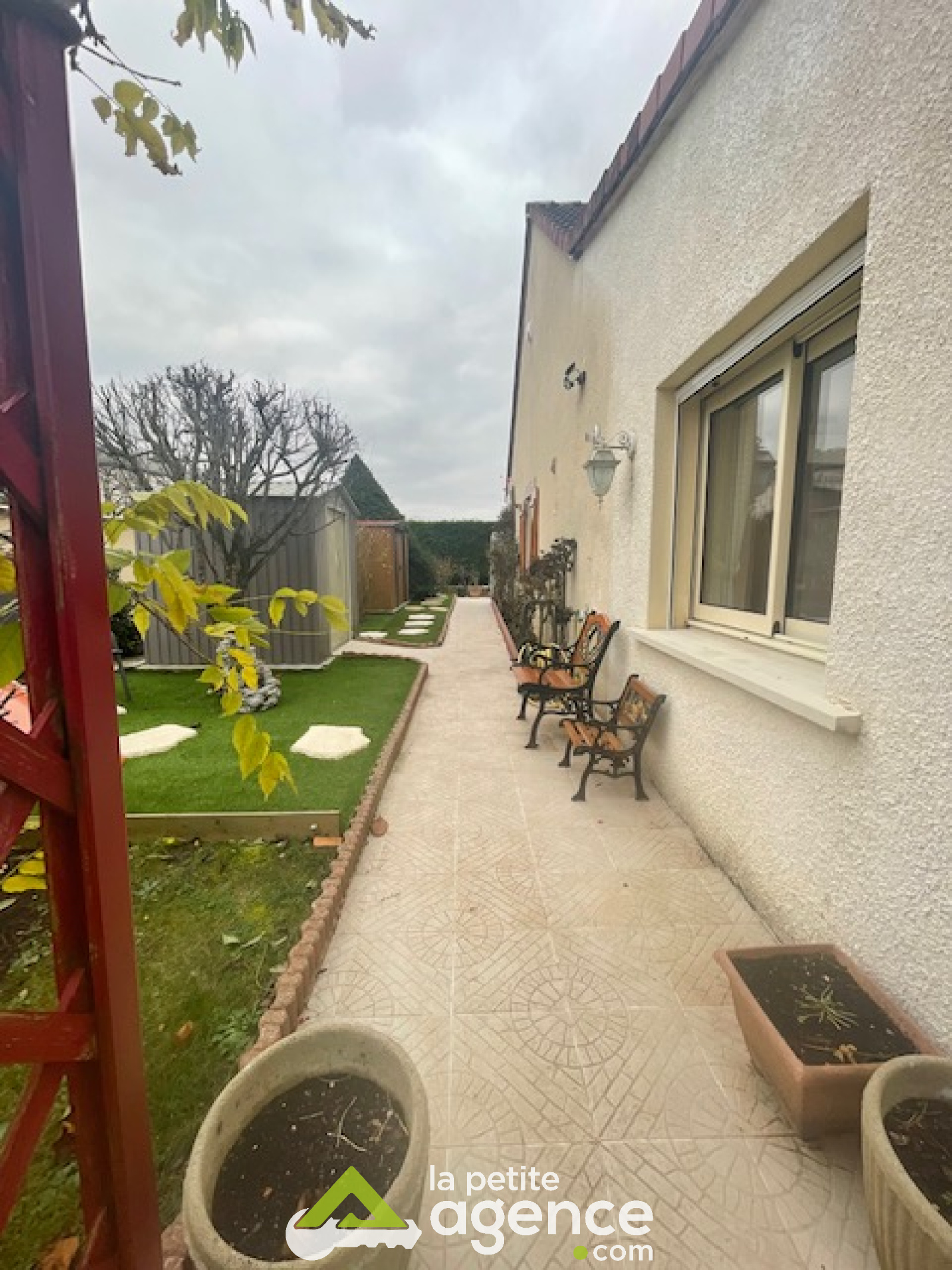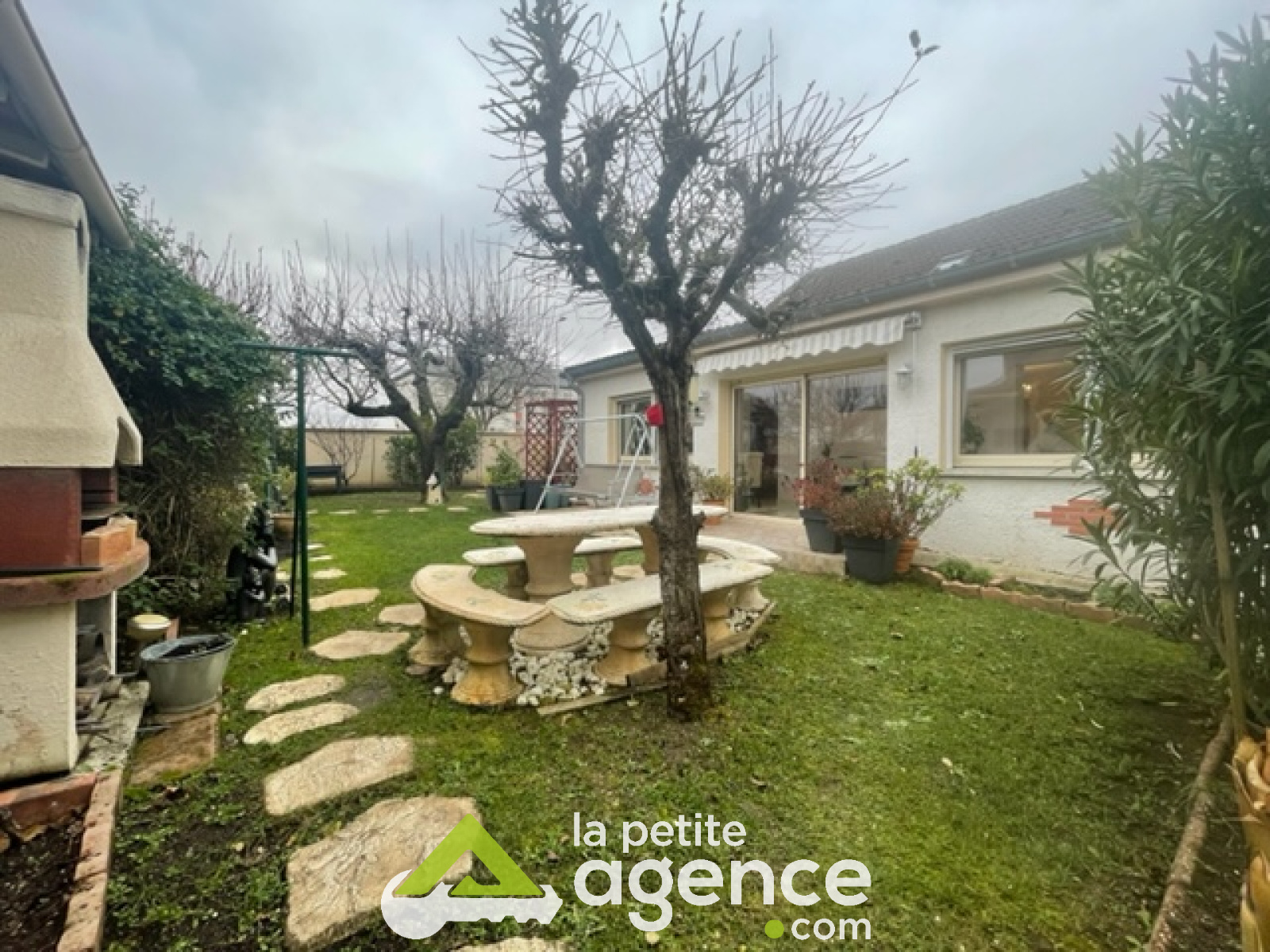 A l'étage, deux chambres, une salle d'eau, toilettes. Un grand garage, un jardin bien entretenu. Le tout sur une parcelle de 450 m2.