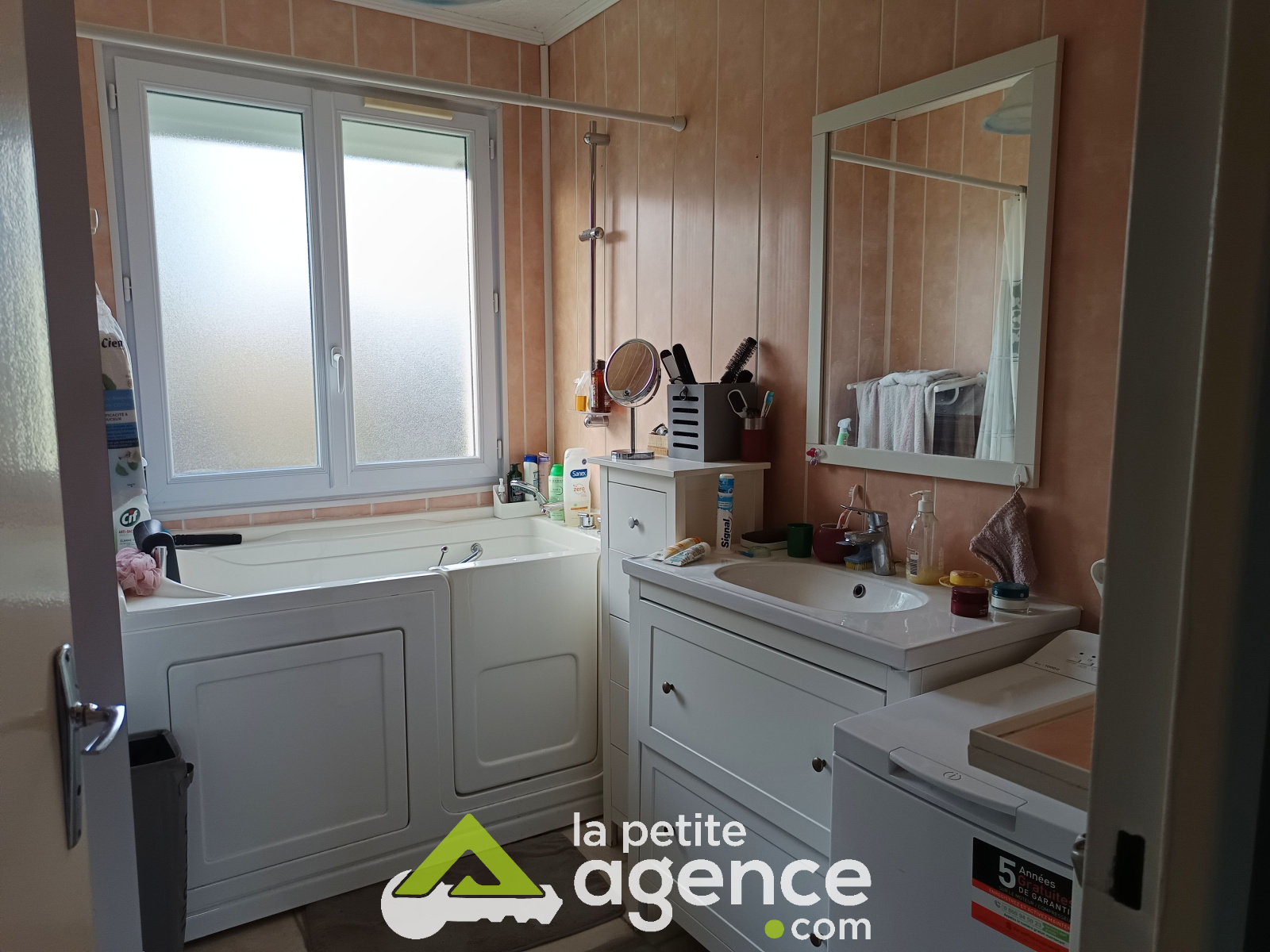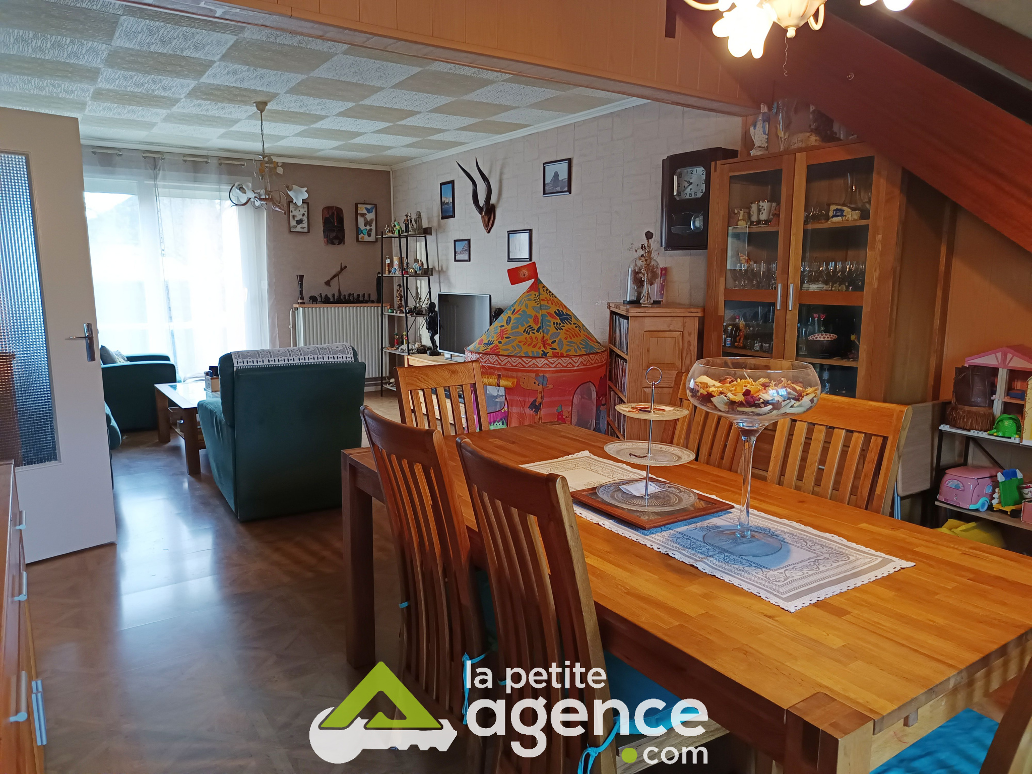 Chauffage au gaz de ville avec une chaudière à condensation de 2024, huisseries double vitrage avec volets roulants électriques, terrasse bois éclairée avec store banne, abris jardin et portail motorixsé.