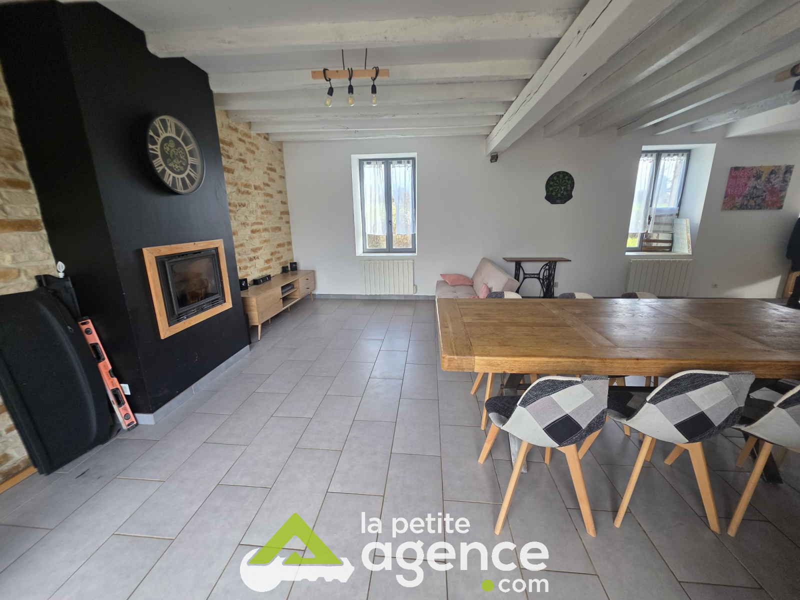 Fosse septique plus aux normes, chauffage électrique et insert cheminée, volet roulant manuel.