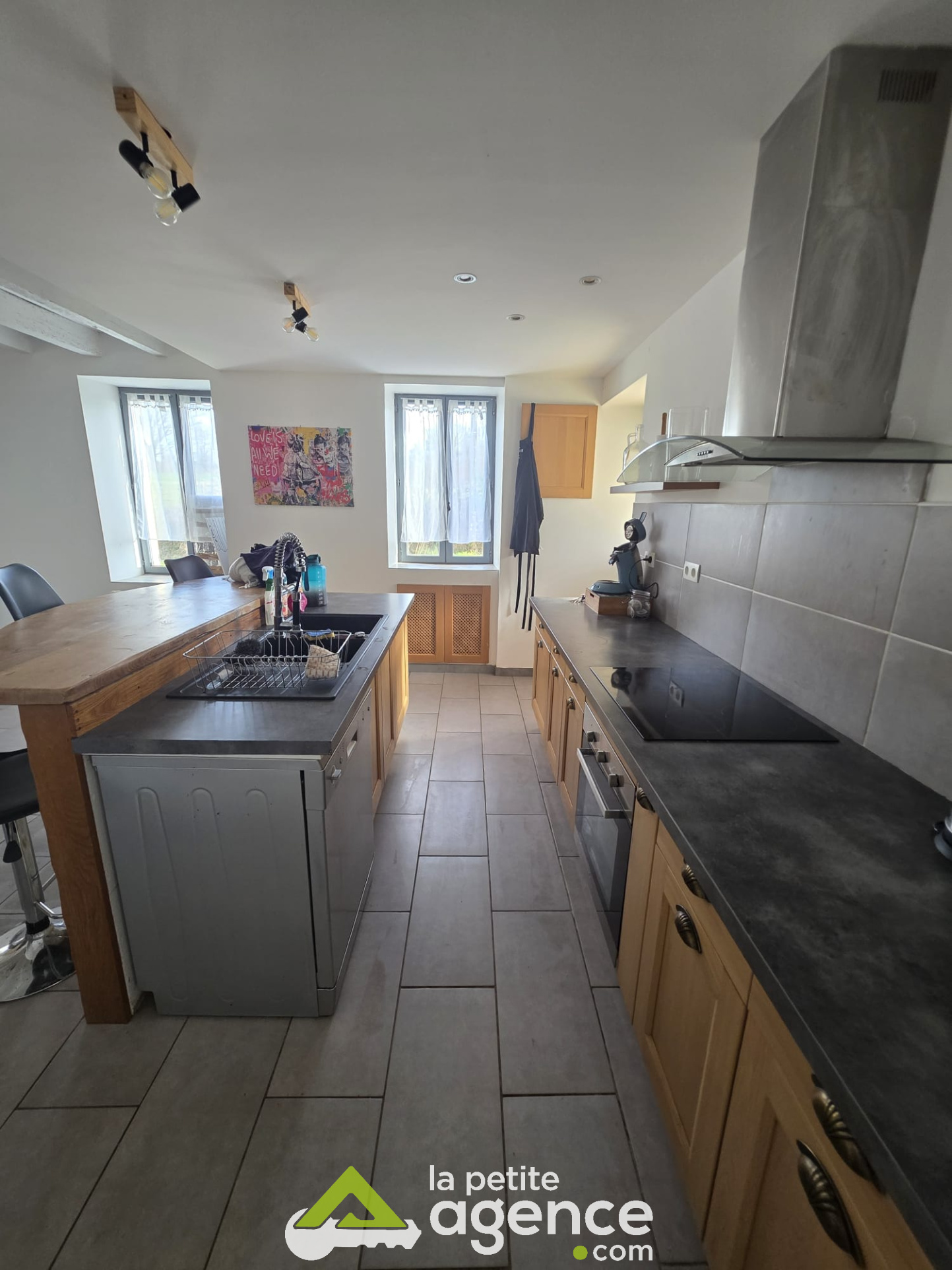 Thaumiers (18210)THAUMIERS: Maison comprenant une petite véranda sur cuisine aménagée et équipée ouverte sur salon-séjour avec insert bois, une buanderie, un wc, une salle de bain comprenant aussi une douche.