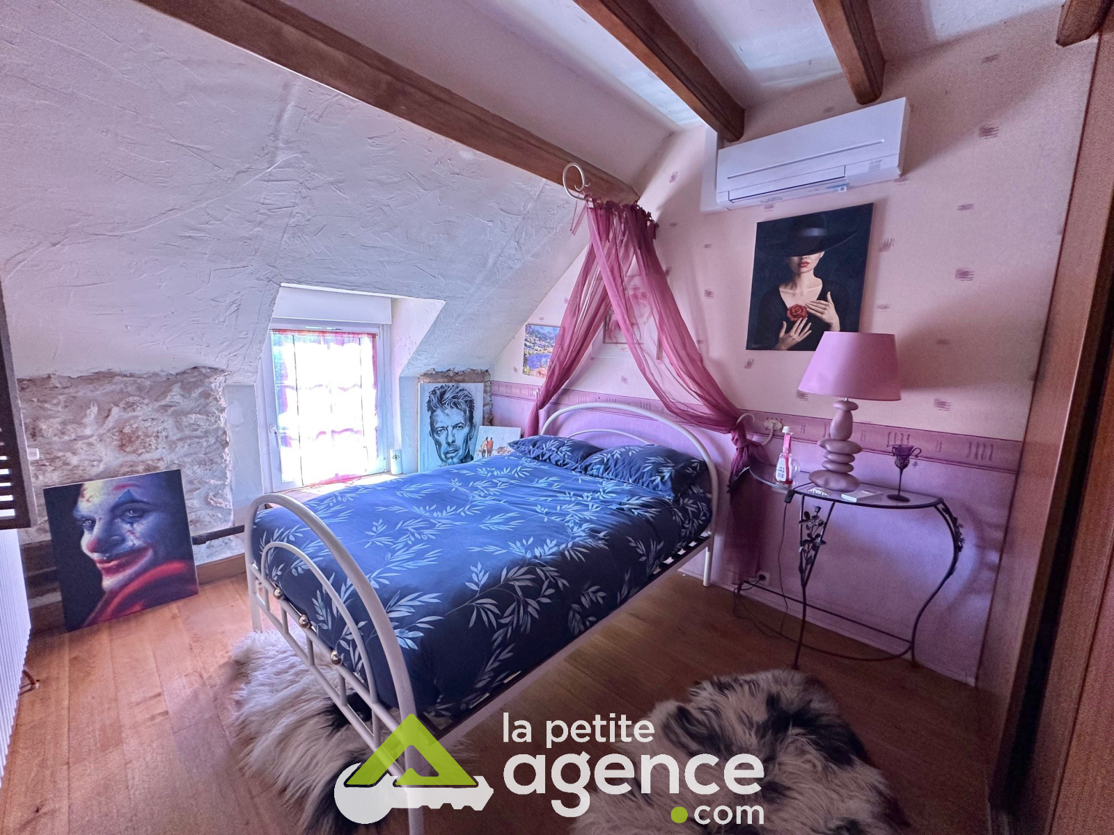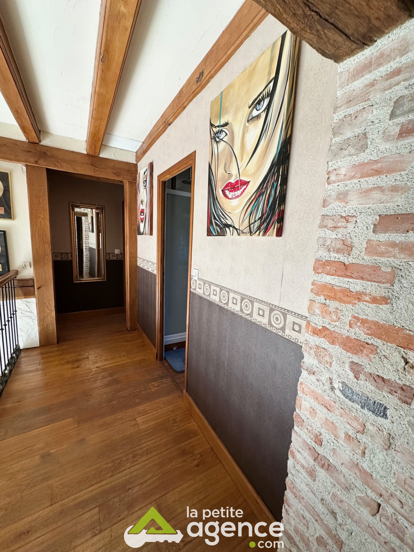 A l'étage: quatre chambres, une salle de bains avec douche et WC.