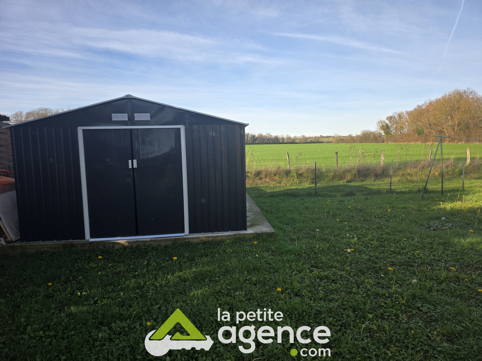 Une terrase sur l'arrière agrémente la maison avec sa vue sur la campagne.