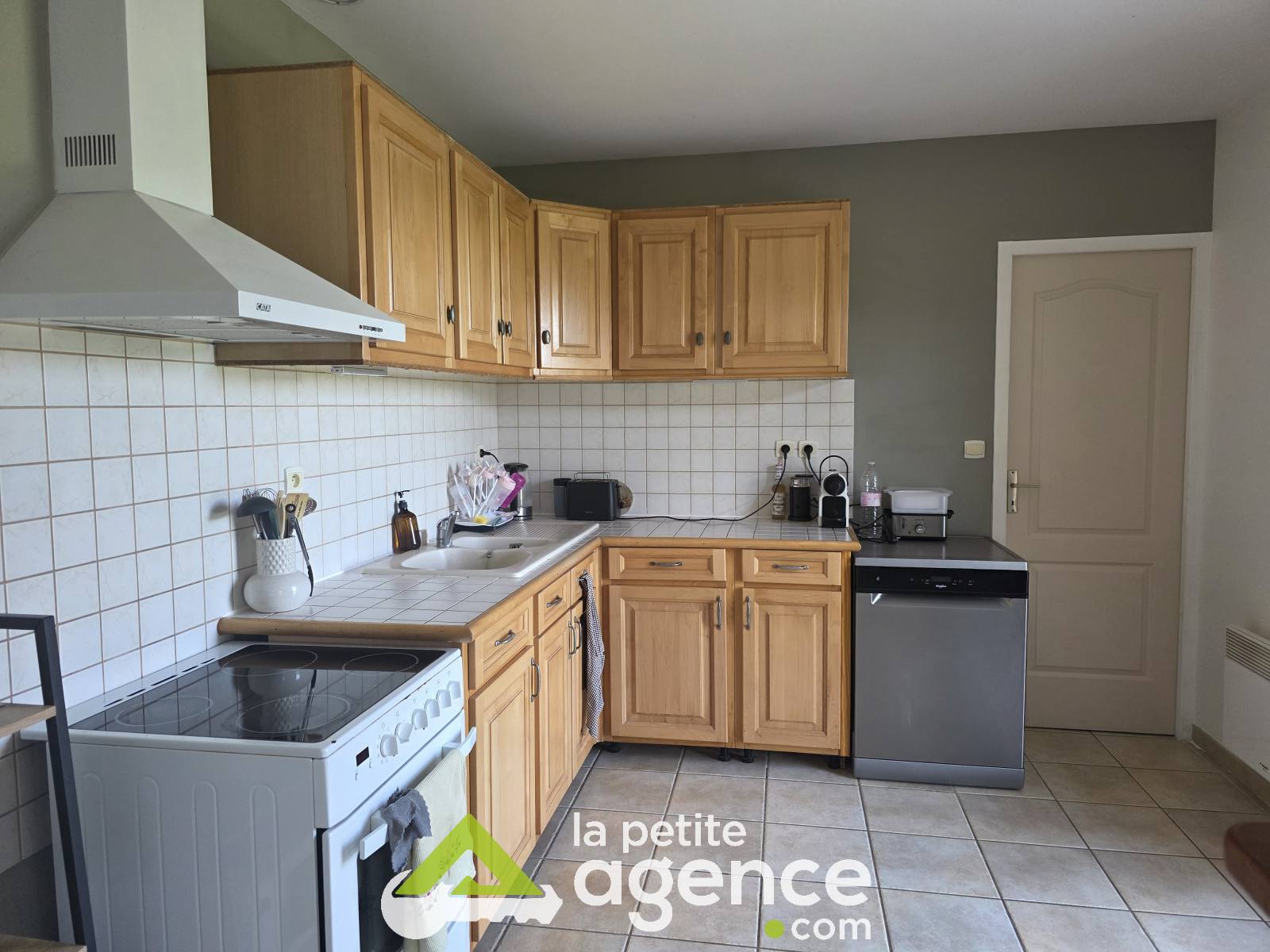Une entrée ouvrant sur salon-séjour et cuisine aménagée et équipée, trois chambres, une salle de douche, wc.