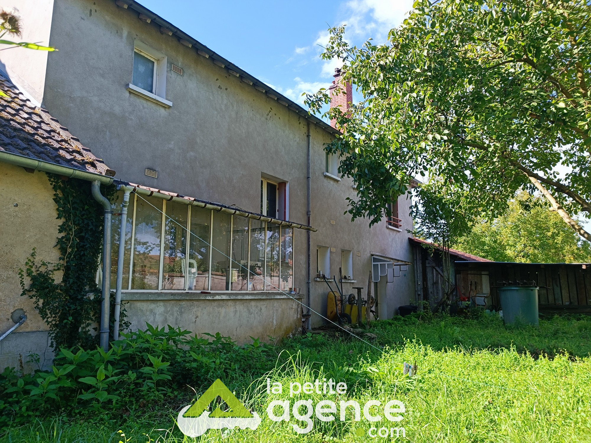 Sancergues (18140)A moins de 10mn de la Charité sur Loire (SNCF et A77), Au coeur du village de Sancergues (commerces et services, maison de santé MAM écoles et collège). Au calme et à l'écart des routes passagères : grande maison familiale avec dépendance au fond d'une impasse. Elle est habitable en l'état, mais bien sûr elle nécessite des travaux de rénovation (isolation, fenêtres, électricité...) pour en faire une maison moderne. 160m2 habitables composé au rdc d'une cuisine aménagée avec sa véranda ancienne, un séjour, une salle à manger, SbB et WC. L'étage comprend 5 grandes chambres, deux dressing, SdB et WC. Toutes les pièces (sauf couloirs et pièces d'eau) sont en parquet chêne massif, chauffage central avec chaudière bois (ancienne) + ballon tampon 1000L. Grand garage attenant et communiquant avec la maison, cave, hangar, et un jardin clos de 1112m2 avec nombreux arbres fruitiers et noyer. Vous disposerez en plus d'une seconde maison d'habitation servant actuellement d'atelier avec grenier.